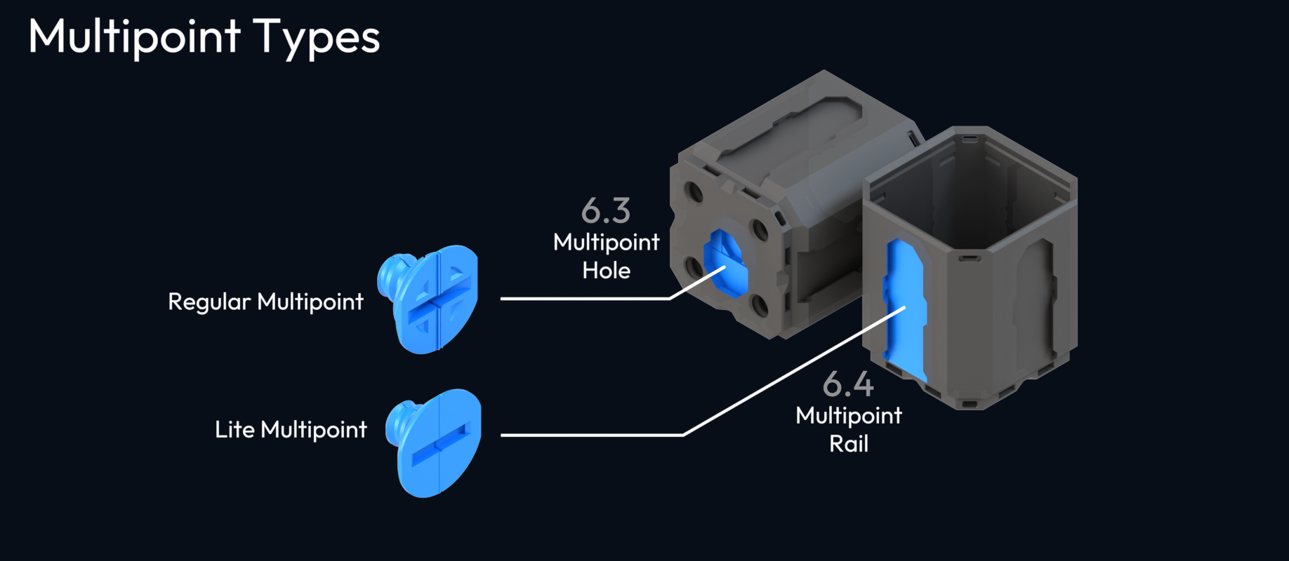 - Lite Multipoint: 1 mm thinner than a Regular Multipoint. Can connect to Multipoint Rails (Negative).
