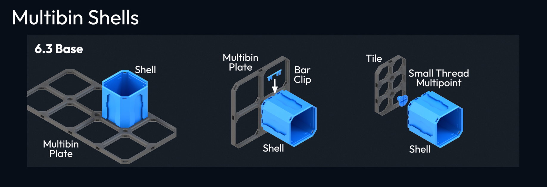 - Additionally, Multibin Shells can be stacked, extended, divided, and work with magnets. Learn more in the Advanced Knowledge Hub.
