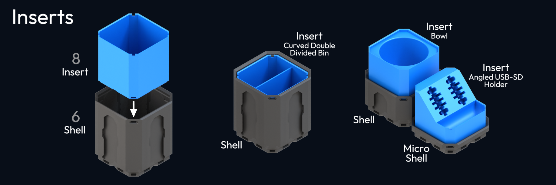 Inserts are placed inside of Multibin Shells to add more functionality.
