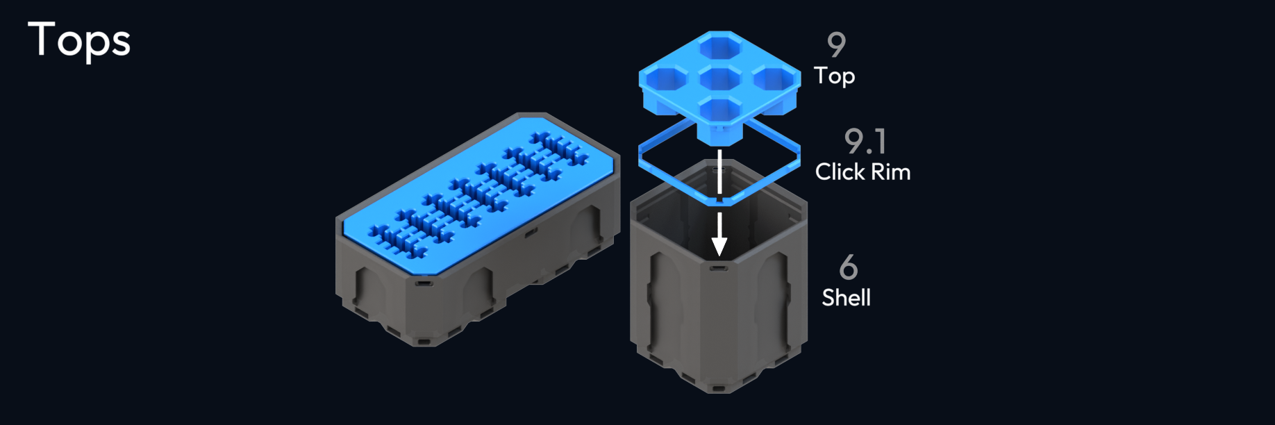 Top Click Rims are used to attach Tops to Multibin Shells.